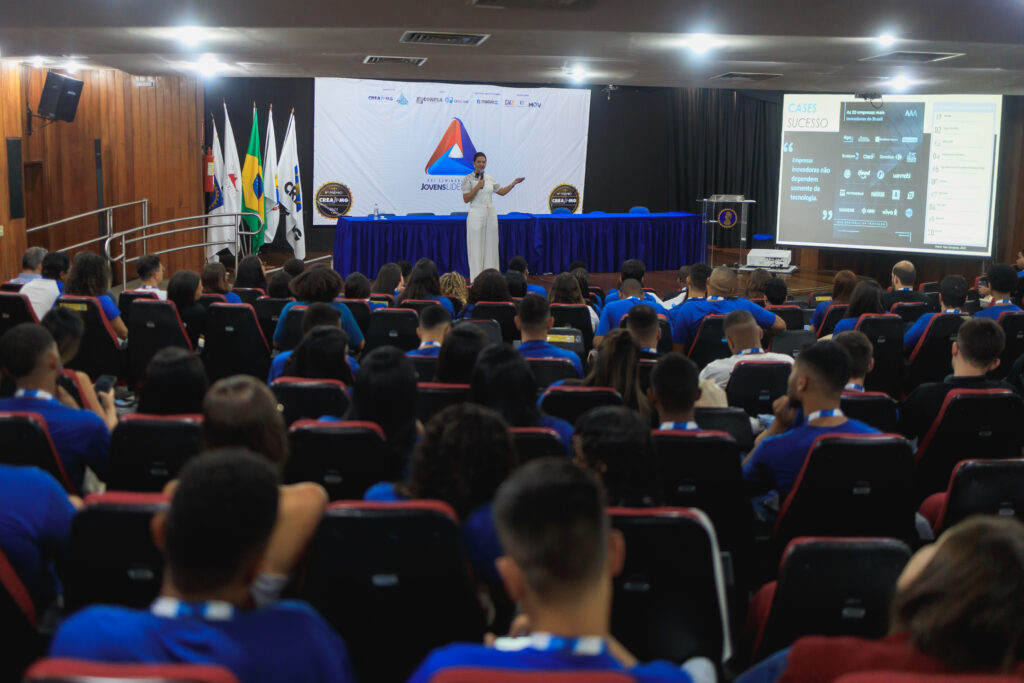 A presidente do Crea Jr-MG, Daniela Pereira Silva, destaca a relevância do seminário como um marco de crescimento e união entre os jovens que integram o programa: