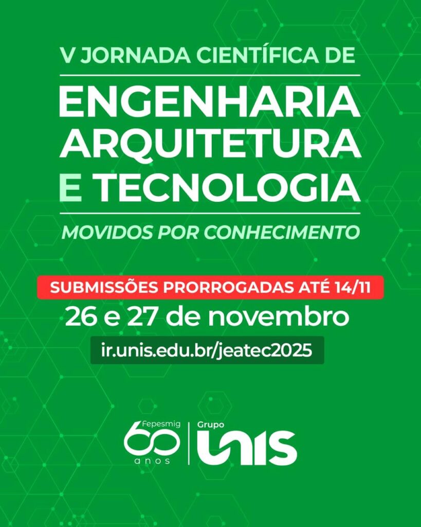 O Grupo Unis realiza, nos dias 26 e 27 de novembro, a quinta edição da Jornada Científica de Engenharia, Arquitetura e Tecnologia (JEATEC), um dos principais eventos acadêmicos da instituição voltados ao estímulo da pesquisa aplicada, da inovação e da integração entre universidade e mercado. A edição de 2025 será realizada em formato híbrido, com atividades presenciais na Cidade Universitária, em Varginha (MG), e transmissão online para todo o Brasil.
