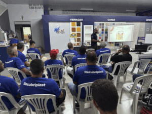 O treinamento técnico da Sinteplast realizado na última terça-feira (25), na Oficina das Tintas, em Varginha, reuniu profissionais de pintura, fornecedores e diretores da AVEA,